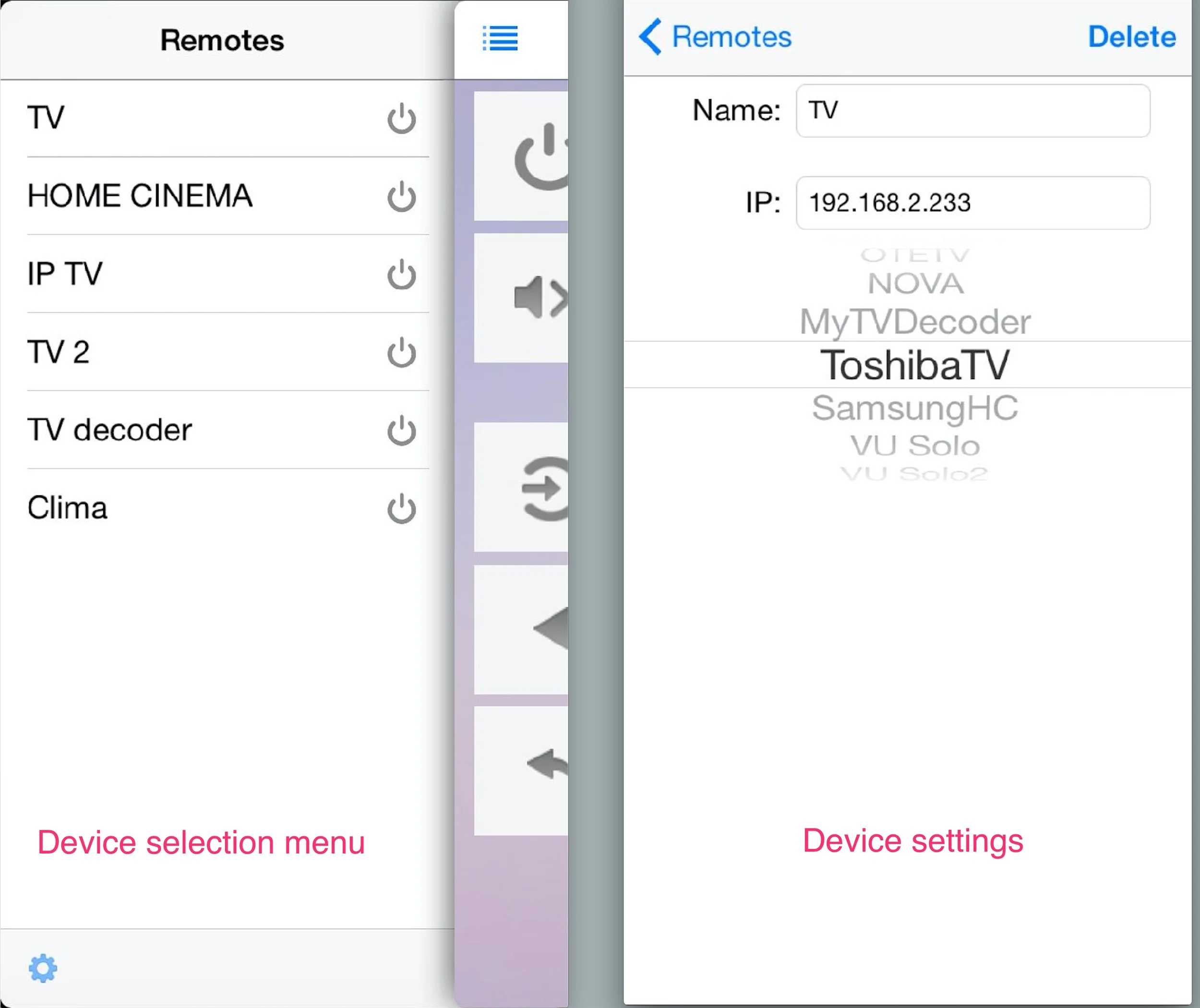 I have developed an iPhone app as a user interface of the remote. I can add and edit devices from the settings of the app.